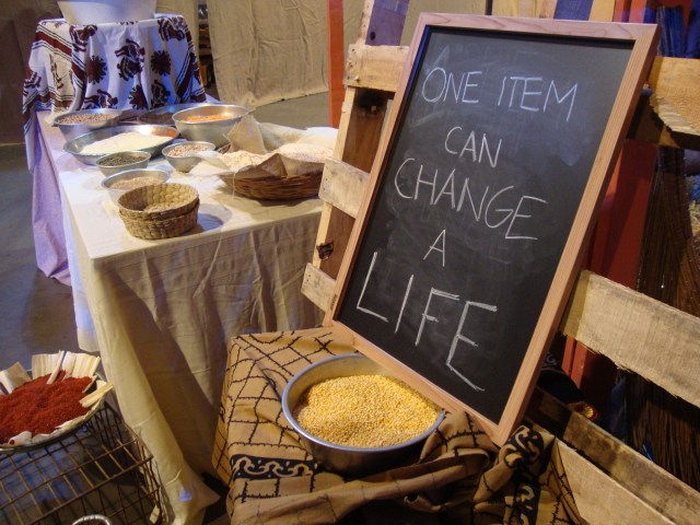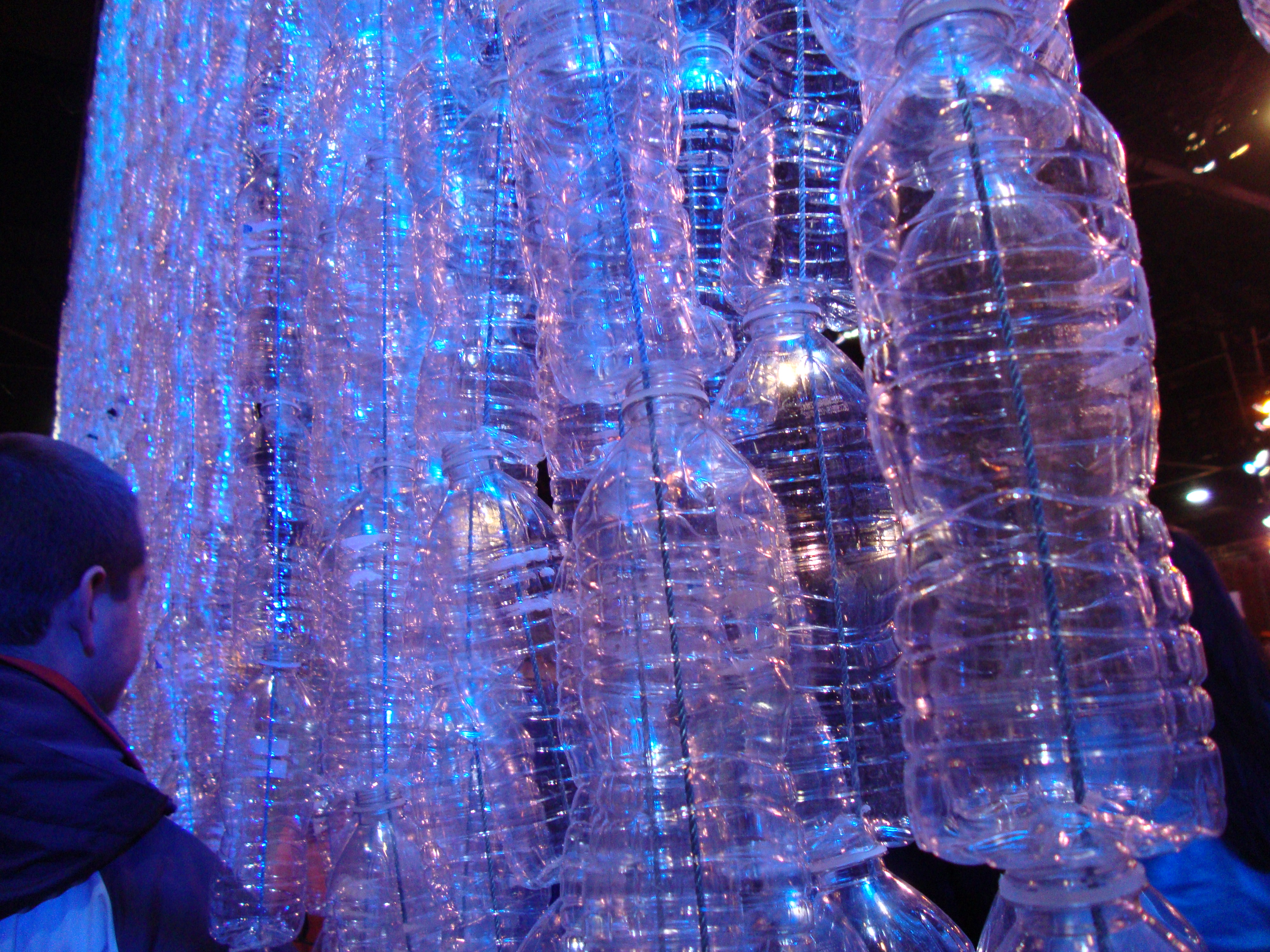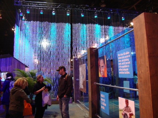 The pictures below are from the area where you could donate to building wells in India. There were multiple areas where they had objects hanging from the ceiling – here it was water bottles.