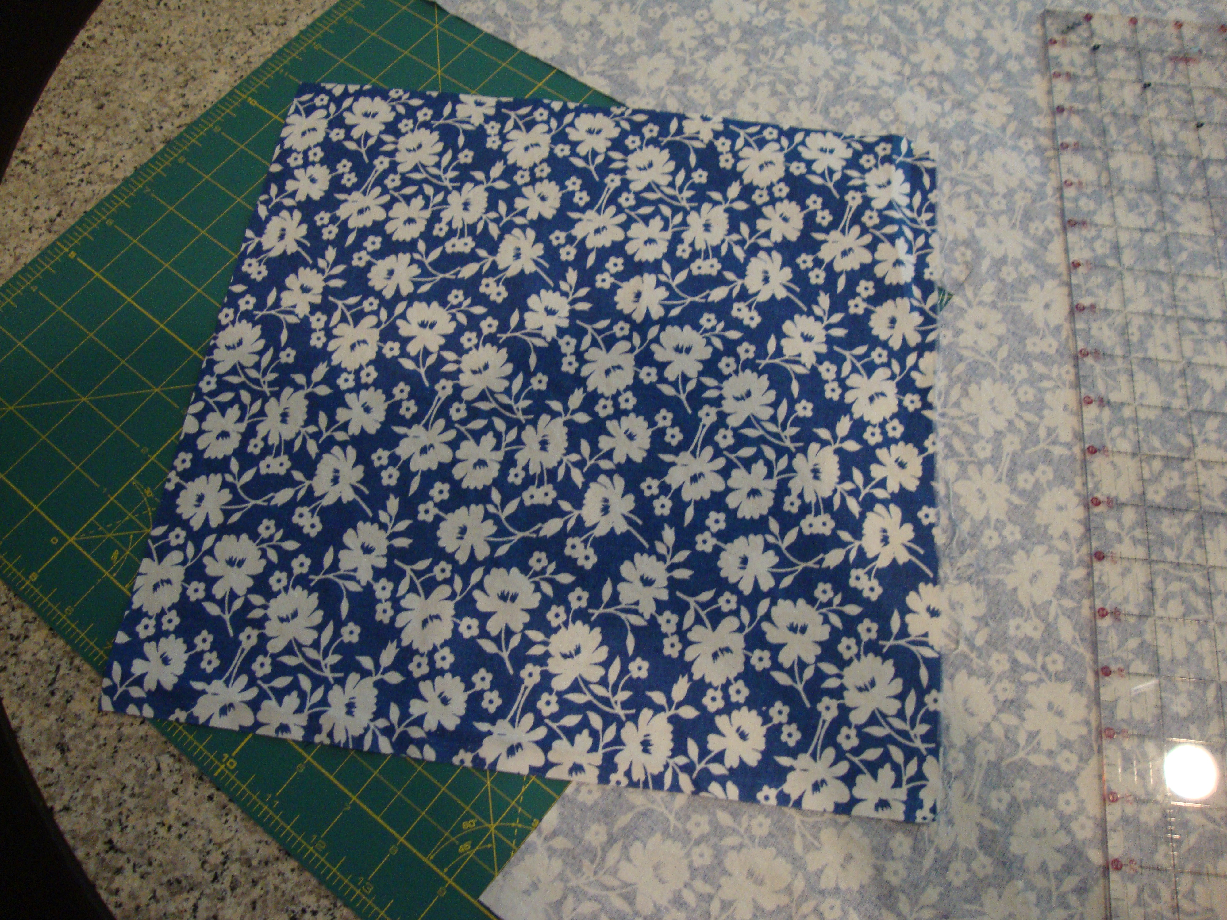 I started by cutting out 13.5 inch squares from both fabrics. Then I arranged both squares with the right sides facing in and sewed a continuous seam (with a 1/4 inch seam allowance) along all 4 sides.