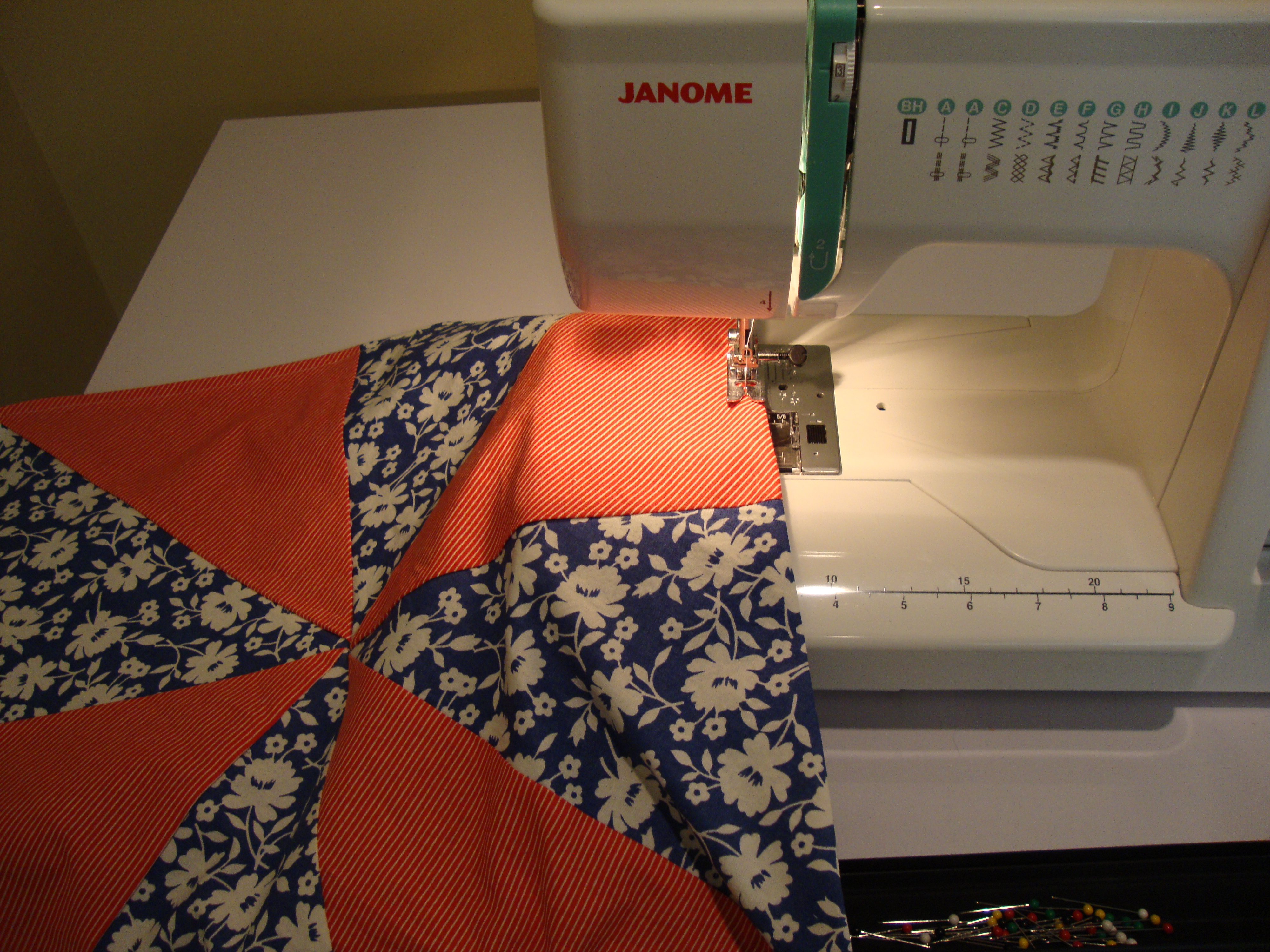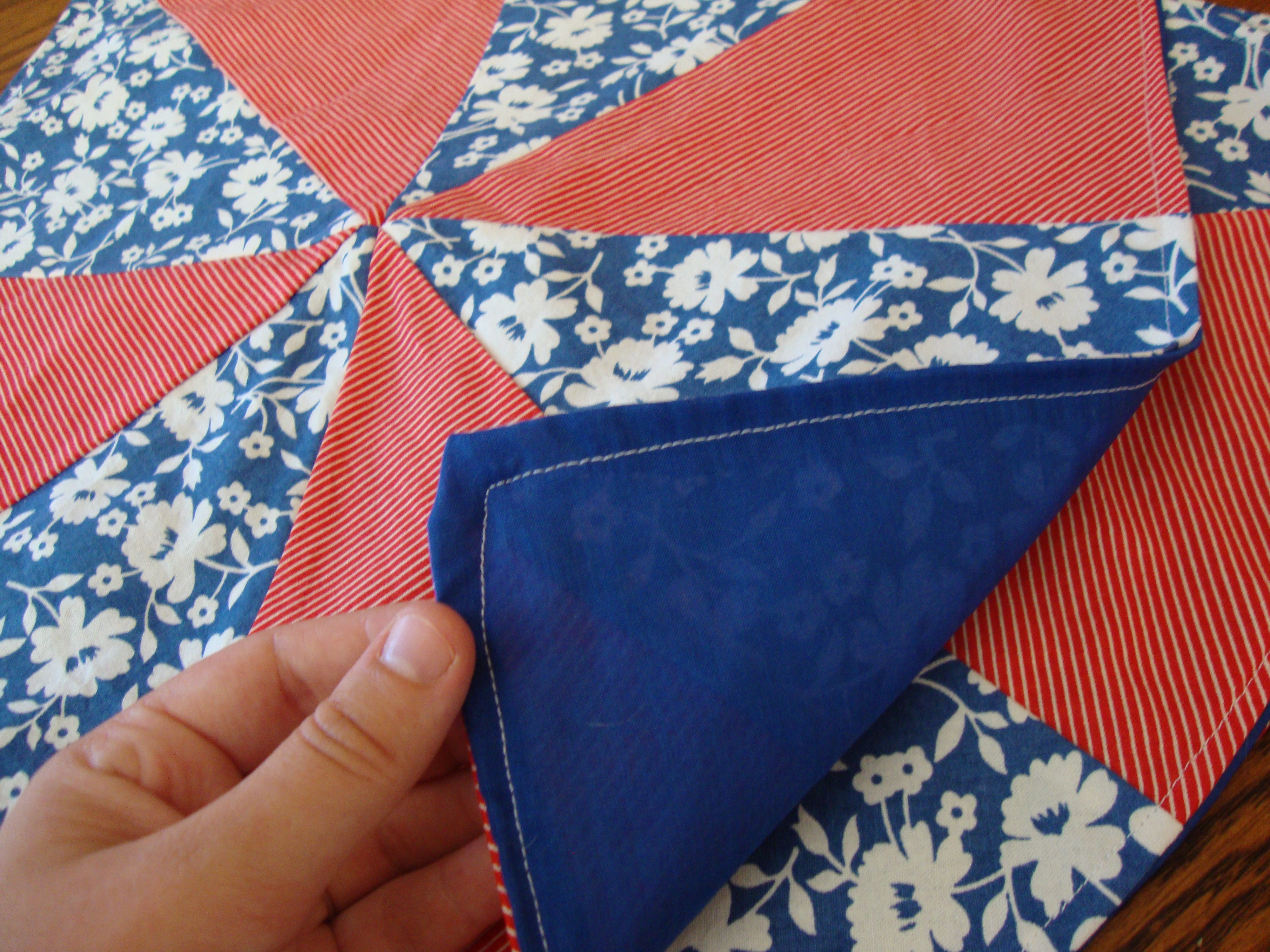 With the 4th of July only days away, I wanted to make something “festive,” but I knew I didn’t have enough time to make something big/time consuming. So the idea of napkins seemed simple and easy to make – and trust me, it was! The idea of making the pinwheel design had been floating around my head ever since I made an quilt, and I managed to find this video that made it so easy to make!