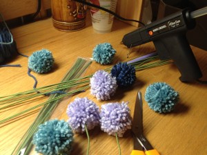 Last step: I cut the wire in half, placed one end in the pom pom and used a glue gun to make sure it will stay in place.
