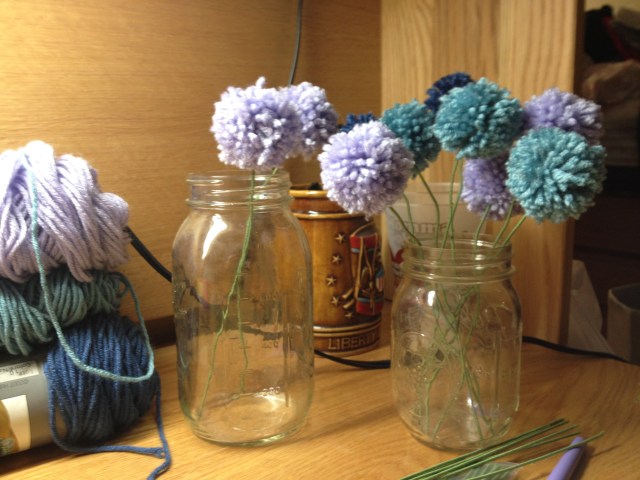 When it came time to start thinking about things to make for Samford’s Spring Fling Flea Market, these pom-pom yarn flowers were the first thing I thought of. One, they are incredibly easy to make. Two, the materials are super cute. And three, the are simply adorable. I only sold them for 50 cents, and since so many people asked me how to make them, I decided to provide a little tutorial.