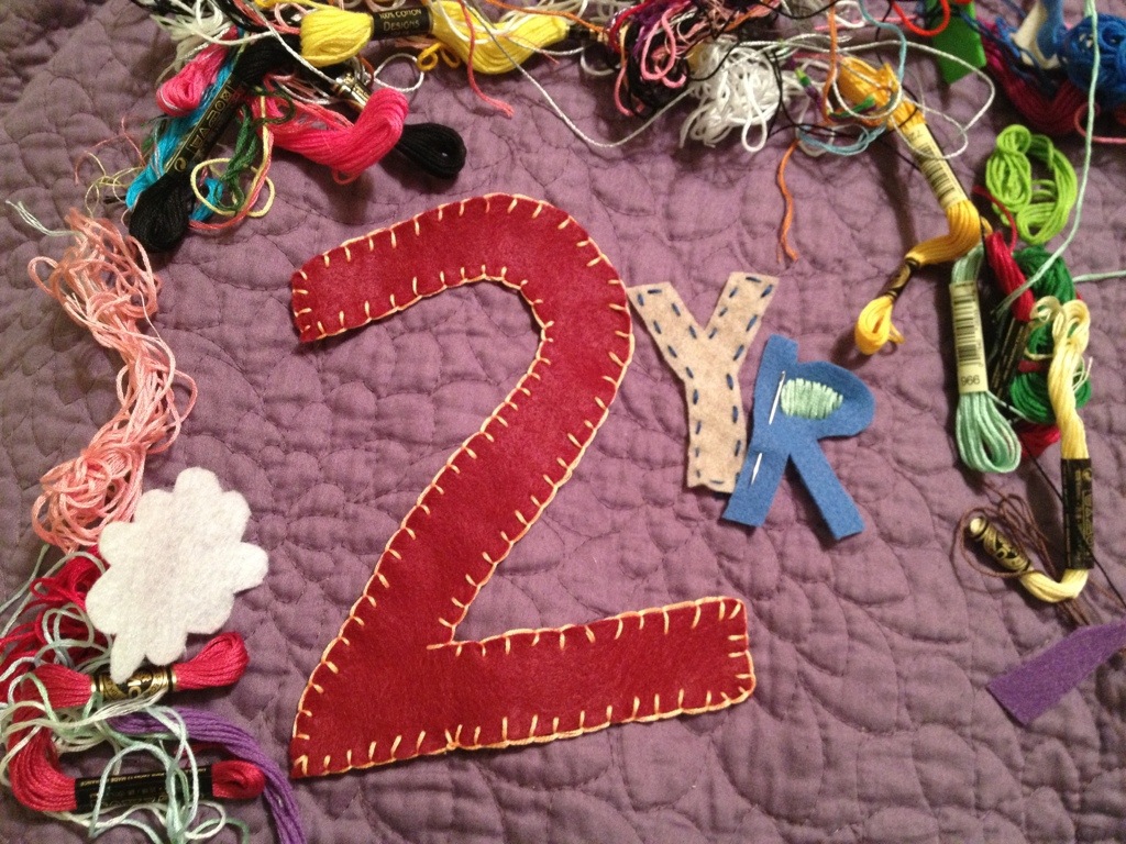 In my excitement of the project (plus, I made it really late at night and the lighting would have been a mess), I didn’t take many step-by-step pictures. But the process doesn’t venture far from a normal Christmas stocking tutorial. After cutting out the main piece of the stocking, I simply attached rows of trim. And instead of using my sewing machine, I used a blanket stitch to hand sew the stocking together. I used light blue thread to provide a little contrast.
