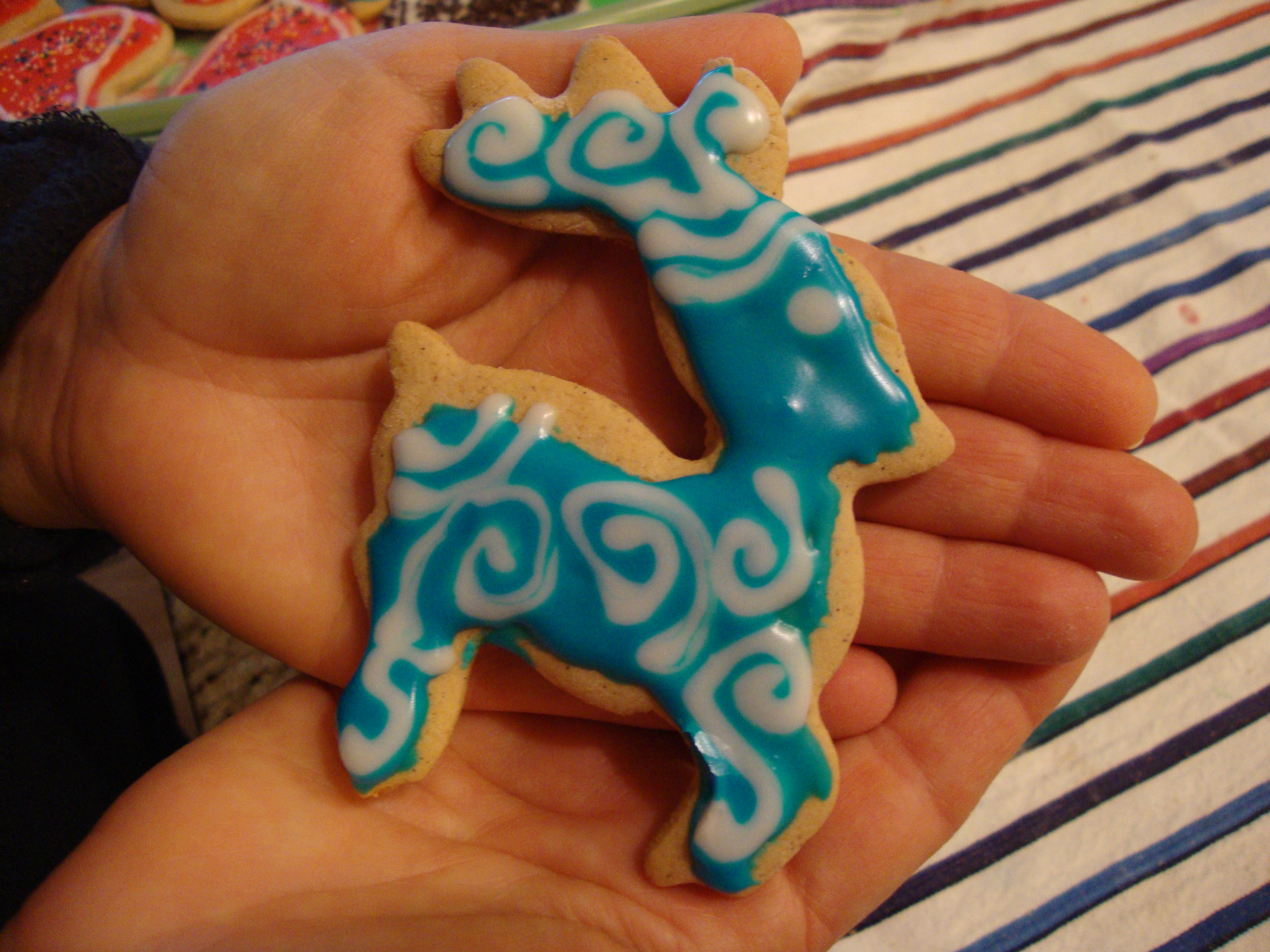I used black fabric (the same cheap fabric as the blue) to cut out a mouth, and we used poster boards to create the eyes. We decided to not attached the eyes until we actually got to the event because we thought there was a high risk they could be damaged in the drive to the church. But I attached the black fabric mouth with spray fabric adhesive.