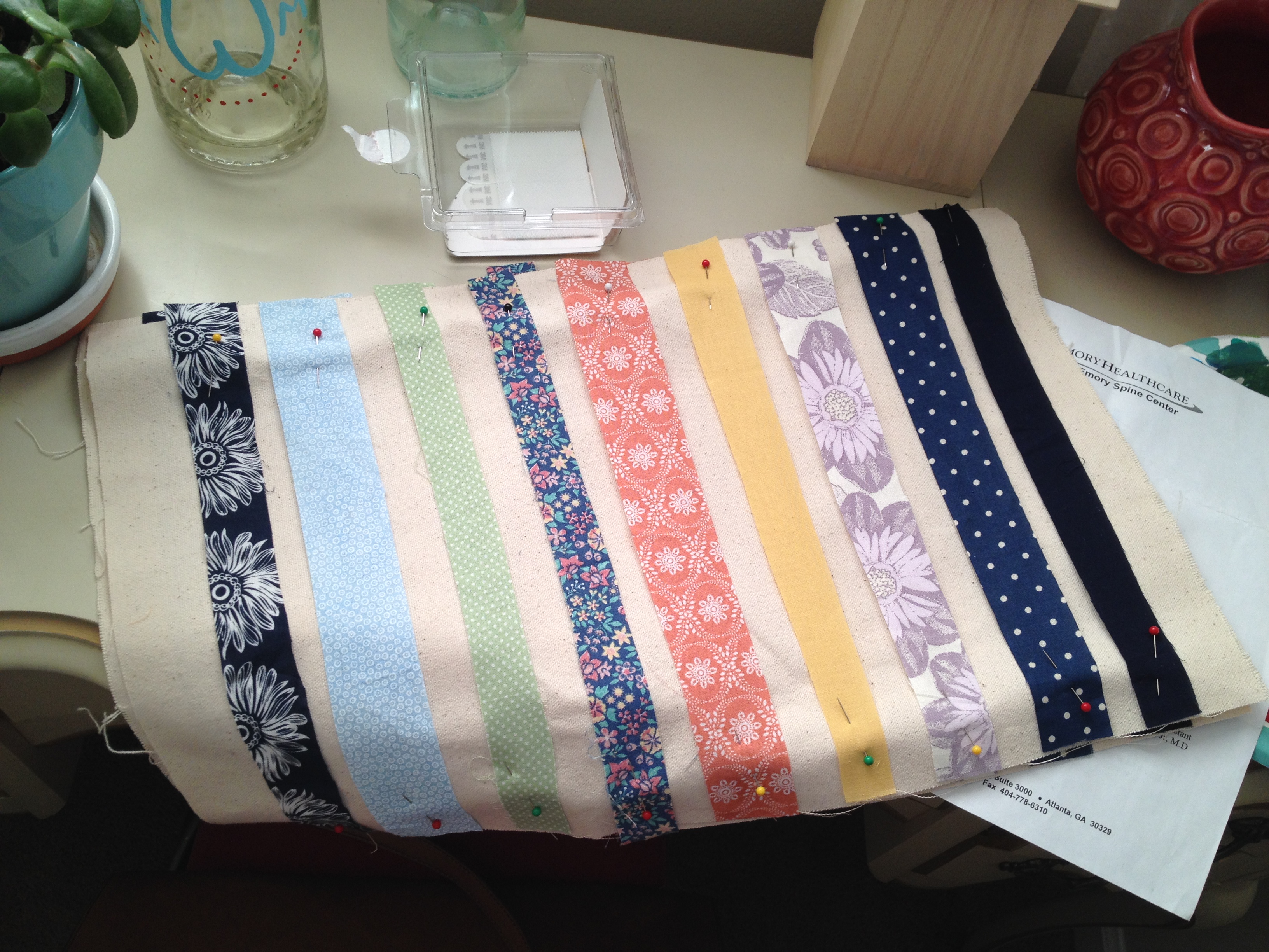 The first step required a lot of Amy since she had to trace her son’s hands. Apparently, he kept trying to grab the paper. Her sister did the same with her daughter. The traces weren’t technically perfect, but I loved the authenticity of them. It liked that it looked like we traced their hands directly onto the fabric.
