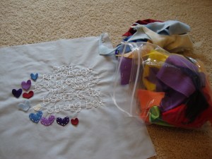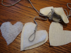 Step 1: Cut hearts out of pink and red felt. (I used pinking scissors when cutting out mine, but the beauty of these notes is that you can do whatever you want.)