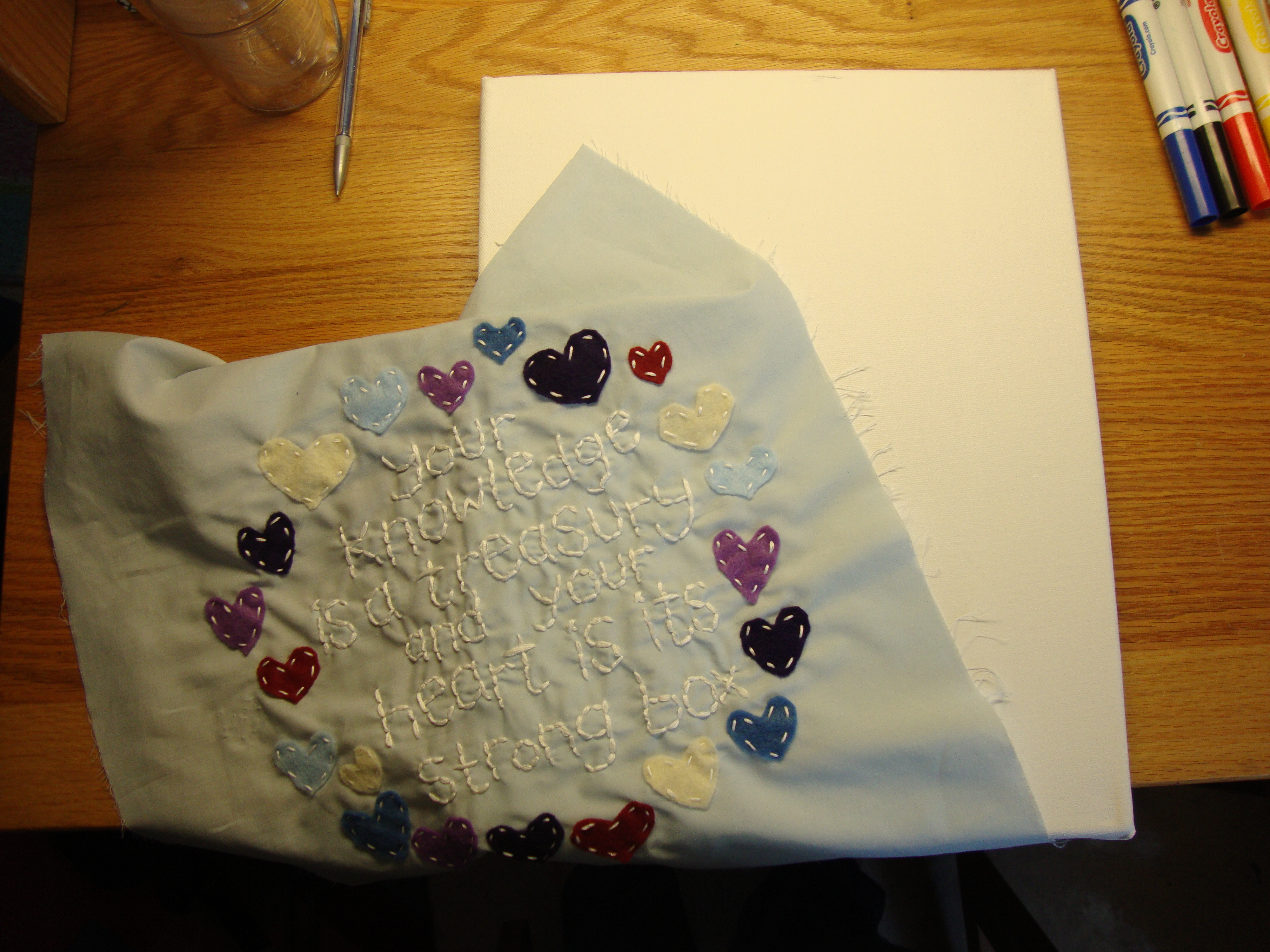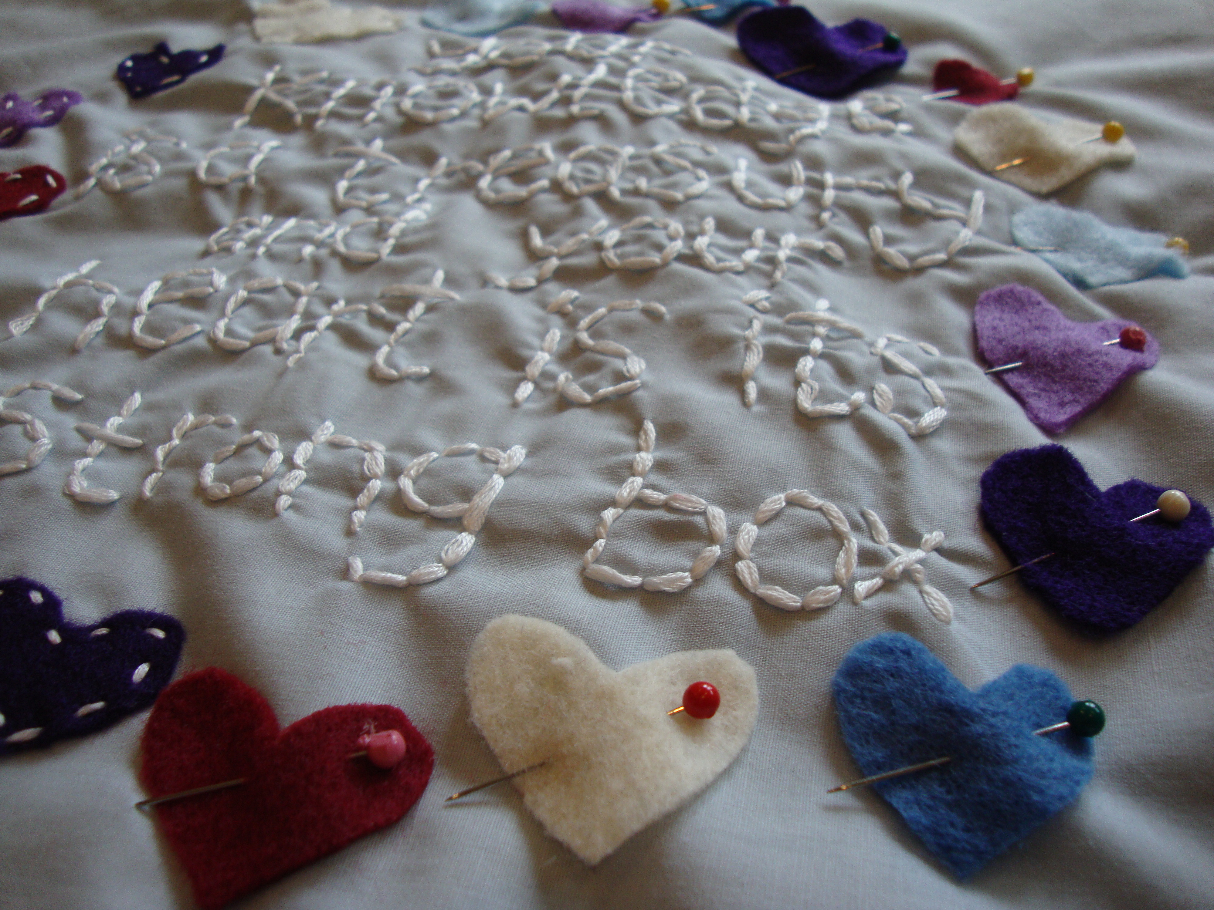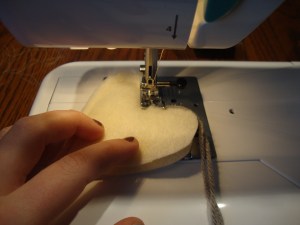 Step 2: Attached the felt to the notecard using a needle and some thread. (It is remarkably easy to sew through card stock!)
