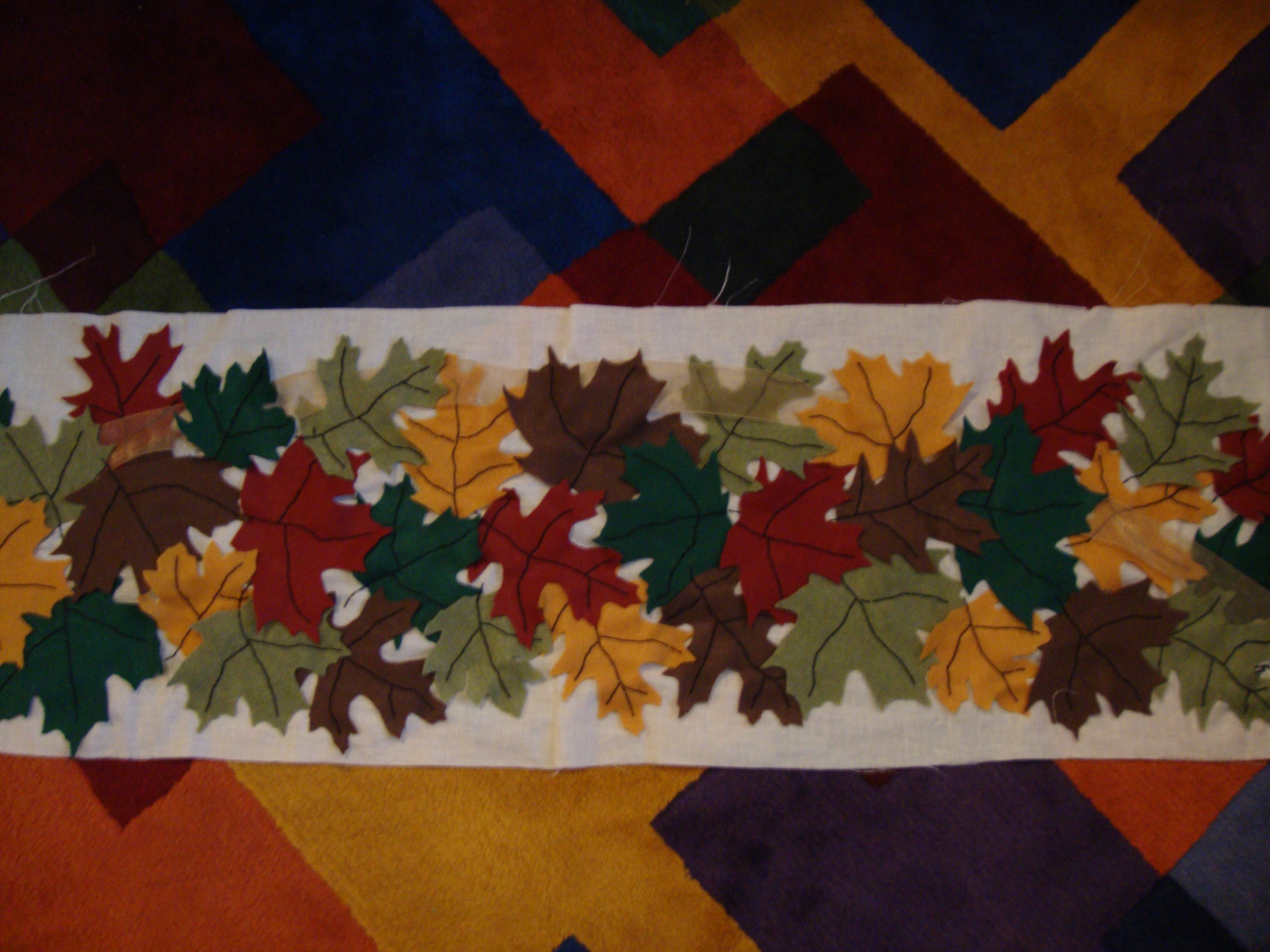 My friend Melissa asked me to make a bunch of felt leaves she could use to create a wreath. She wanted a variety of shapes and colors, so I happily obliged. After cutting out the leaves (I did use stencils for some of them), I used thread to stitch in the veins. But since I knew she wanted to make a wreath, I didn’t care to cover up the back side.