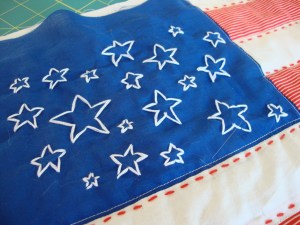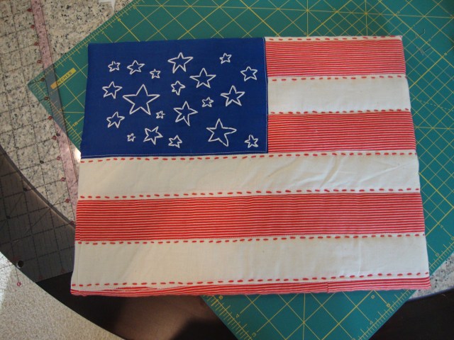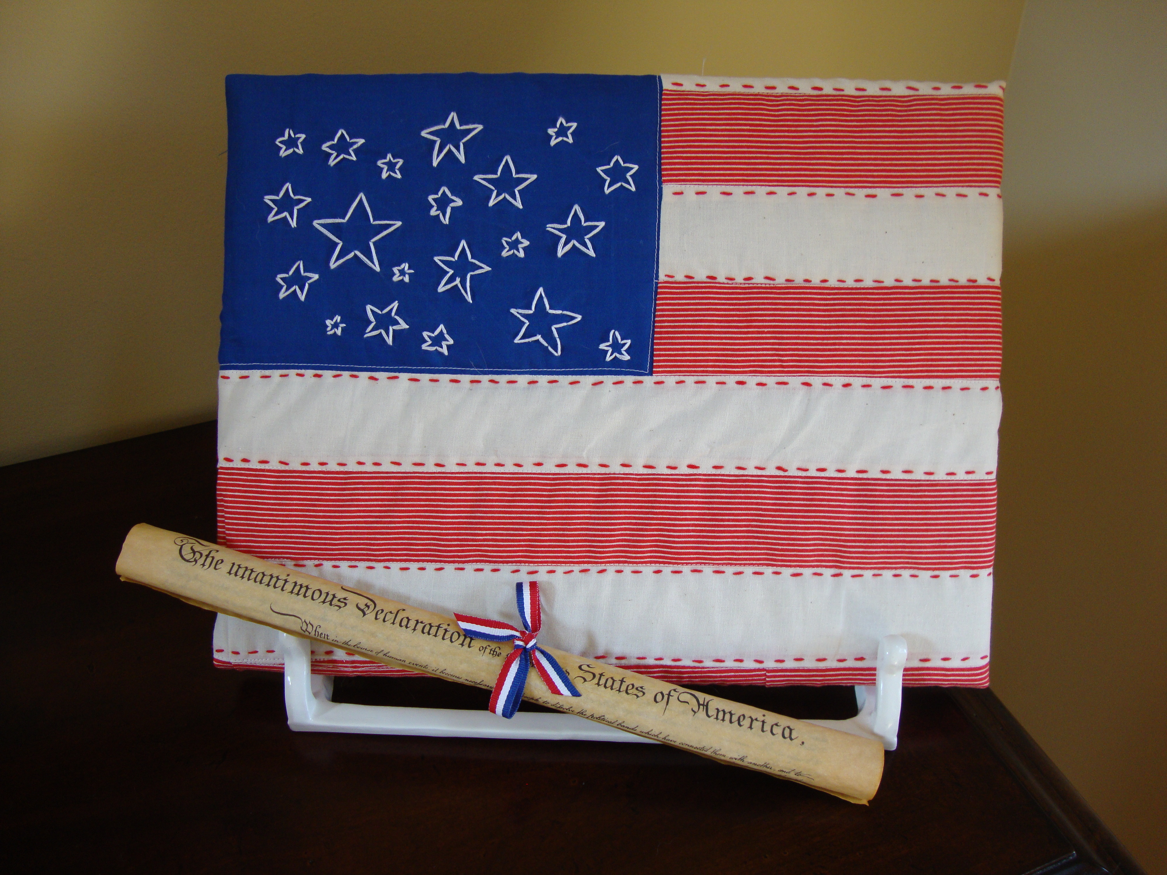 Sorry, but I didn’t take any pictures as I made the flag since the project started out on a whim. But shoot, didn’t it turn out pretty adorable! (I love the embroidery detail. It really makes it look more hand-quilted, though it is definitely machine-quilted!)