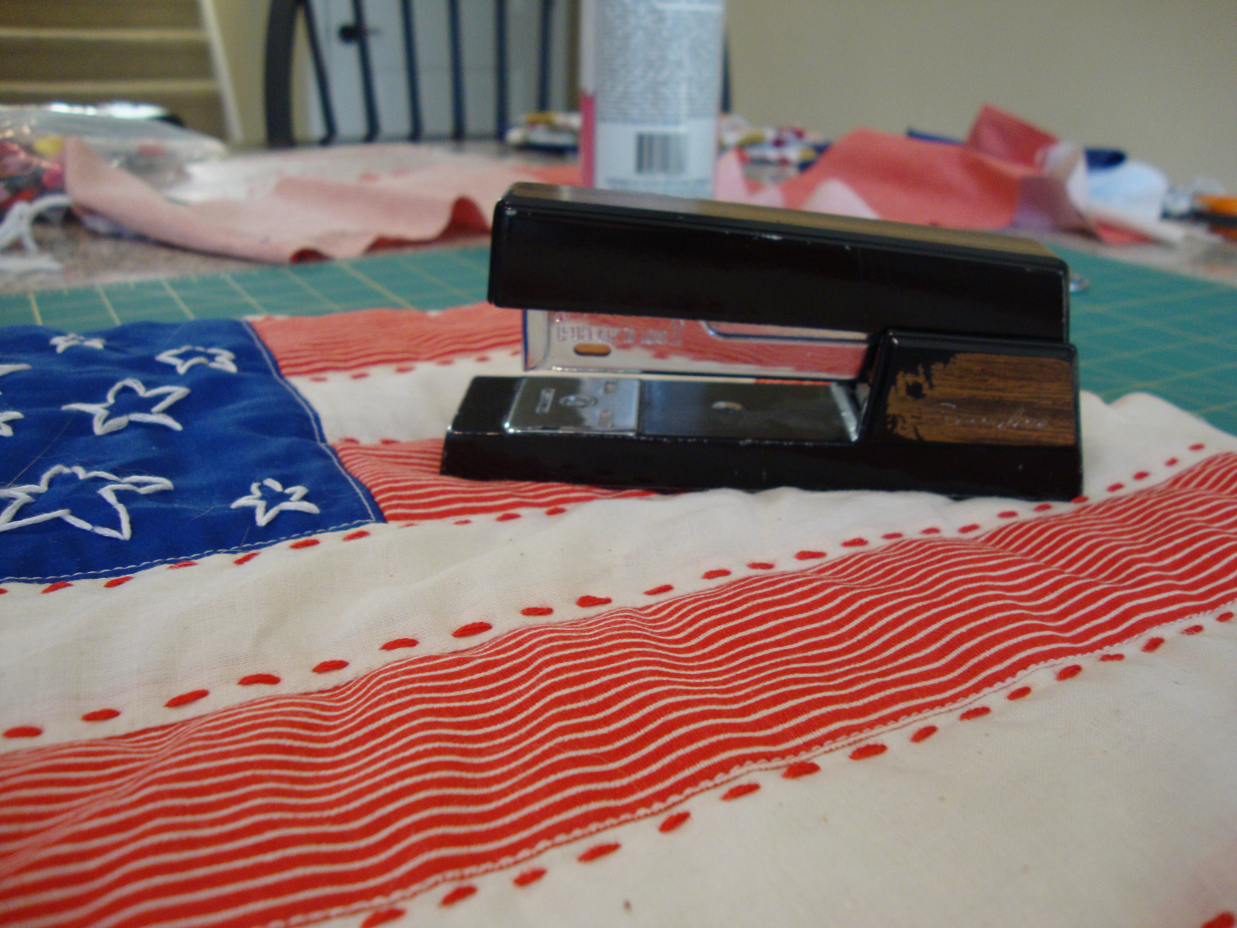 Once I finished the flag, I dug up an abandoned canvas, grabbed a stapler and mounted it!