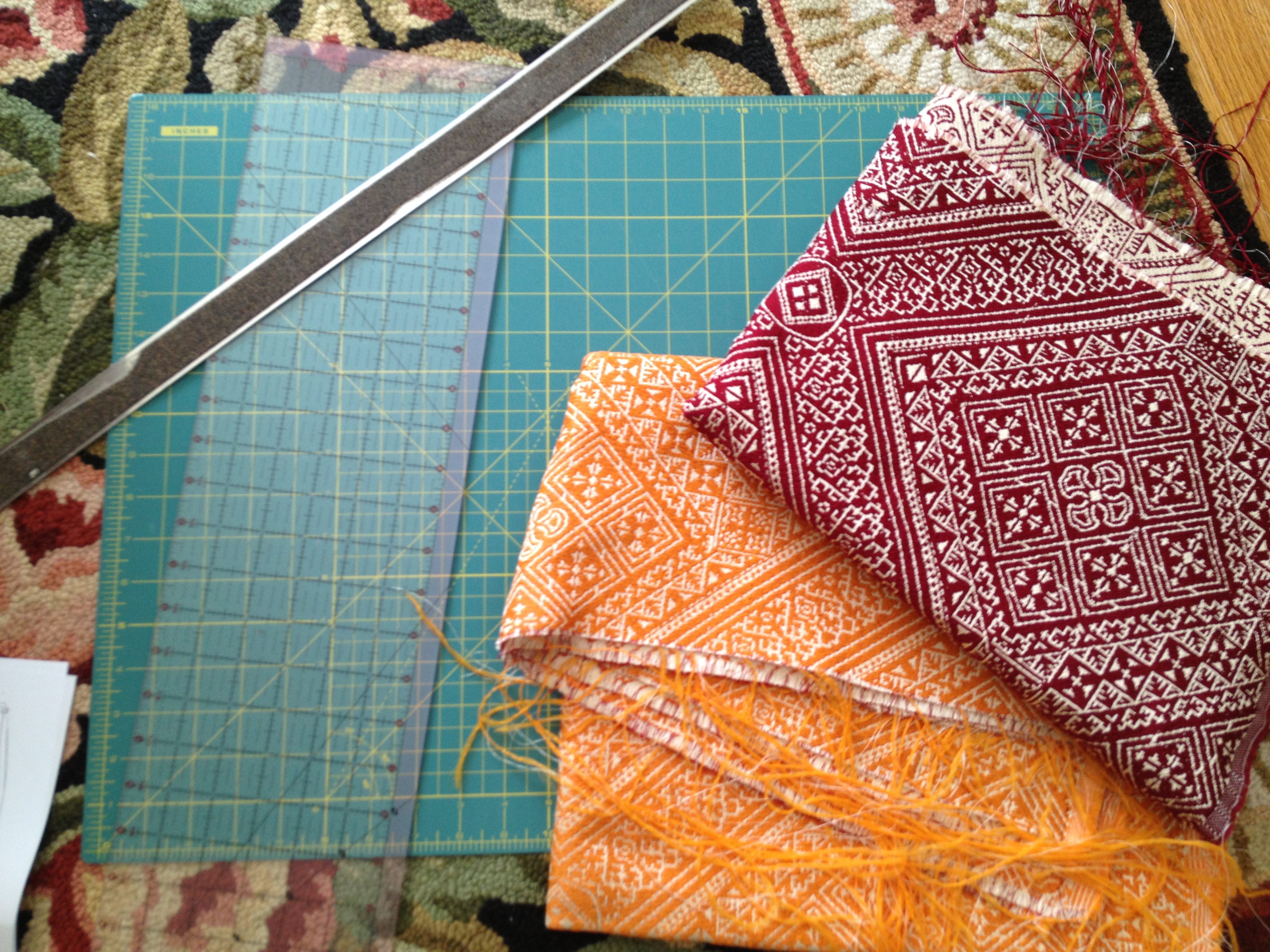 Once complete, cut off all loose thread as well as any excess fabric that extends beyond the length and width of the front piece.